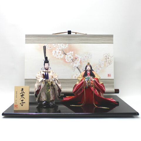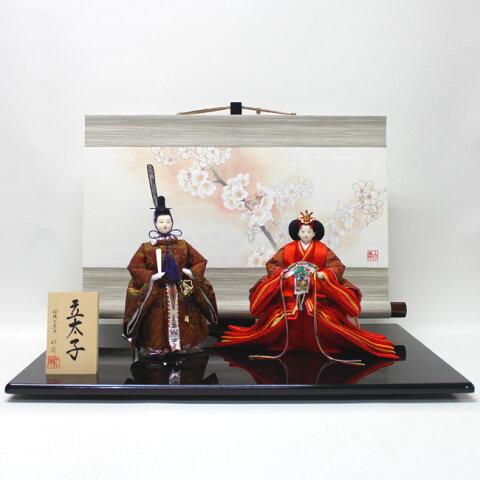 【藤田人形限定商品】【雛人形】【立雛】≪伝統工芸士 佐野竹扇作≫『立雛(赤茶) 桜花掛け軸屏風飾り』